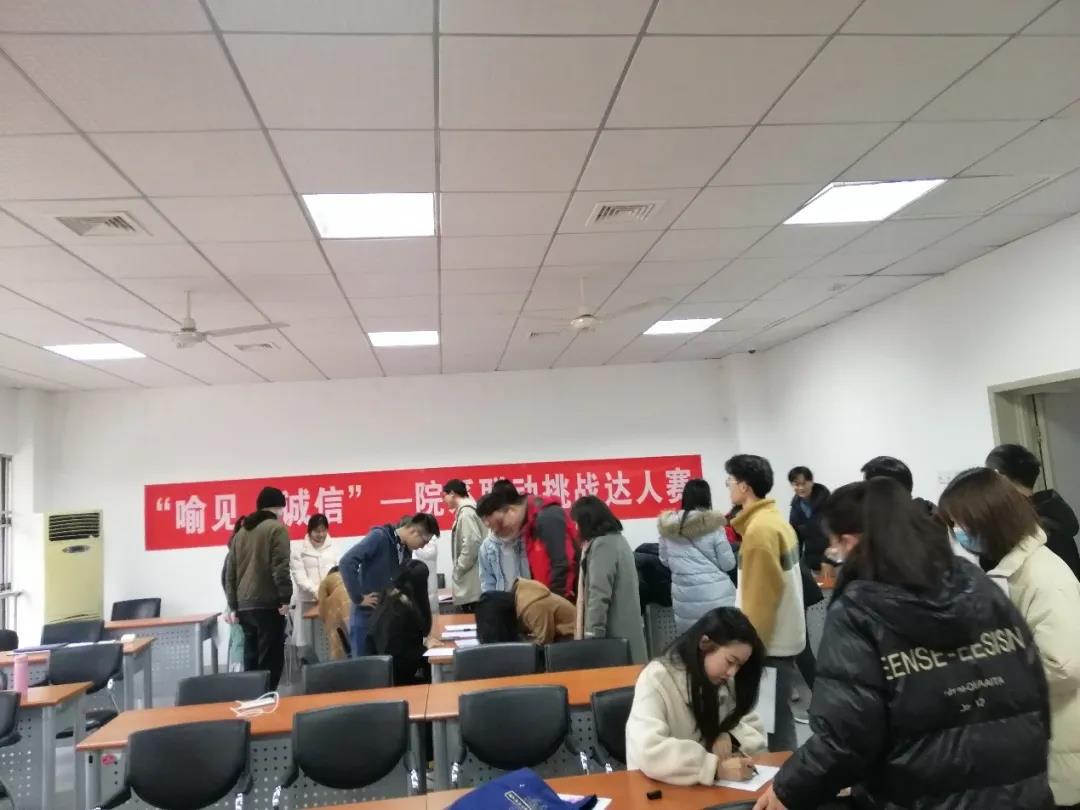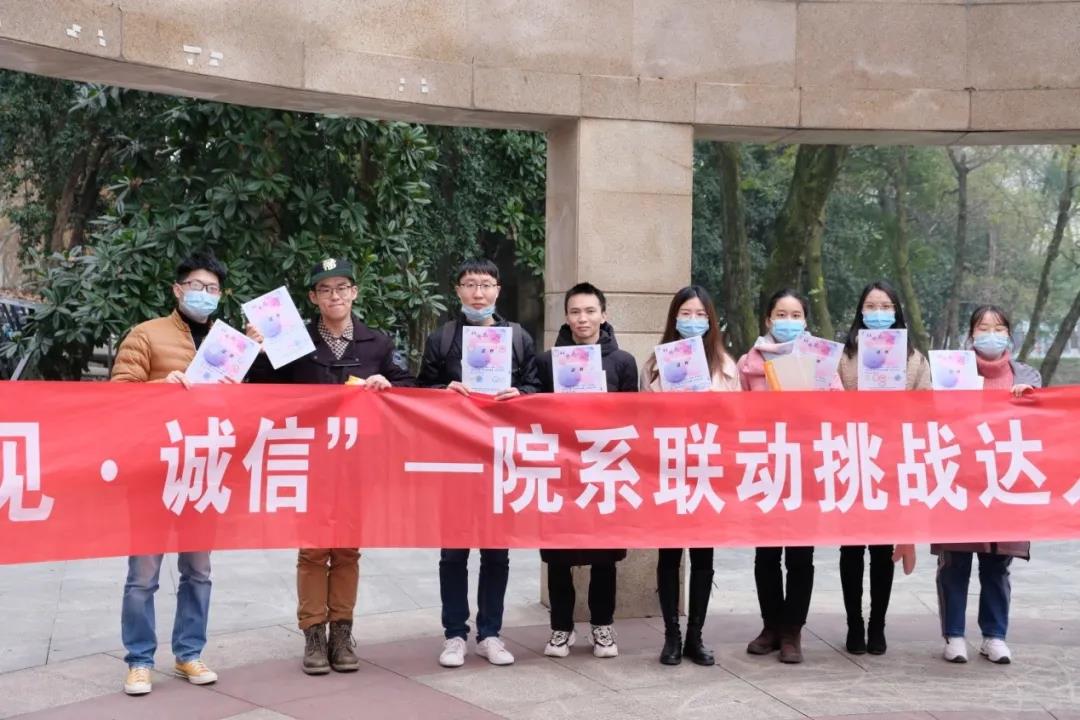 这是六院联合“喻见·诚信”挑战达人赛的“打卡”站点之一,参与活动的14组成员近百人在10日下午分别有序参与挑战活动,小组成员大多数来自不同学院,但他们到达名人园时有说有笑、气氛融洽,对任务的选择与执行也各有选取,过程十分顺利,想必在不同站点的“挑战”让各个小组成员成功建立默契关系,产生新的友谊。
