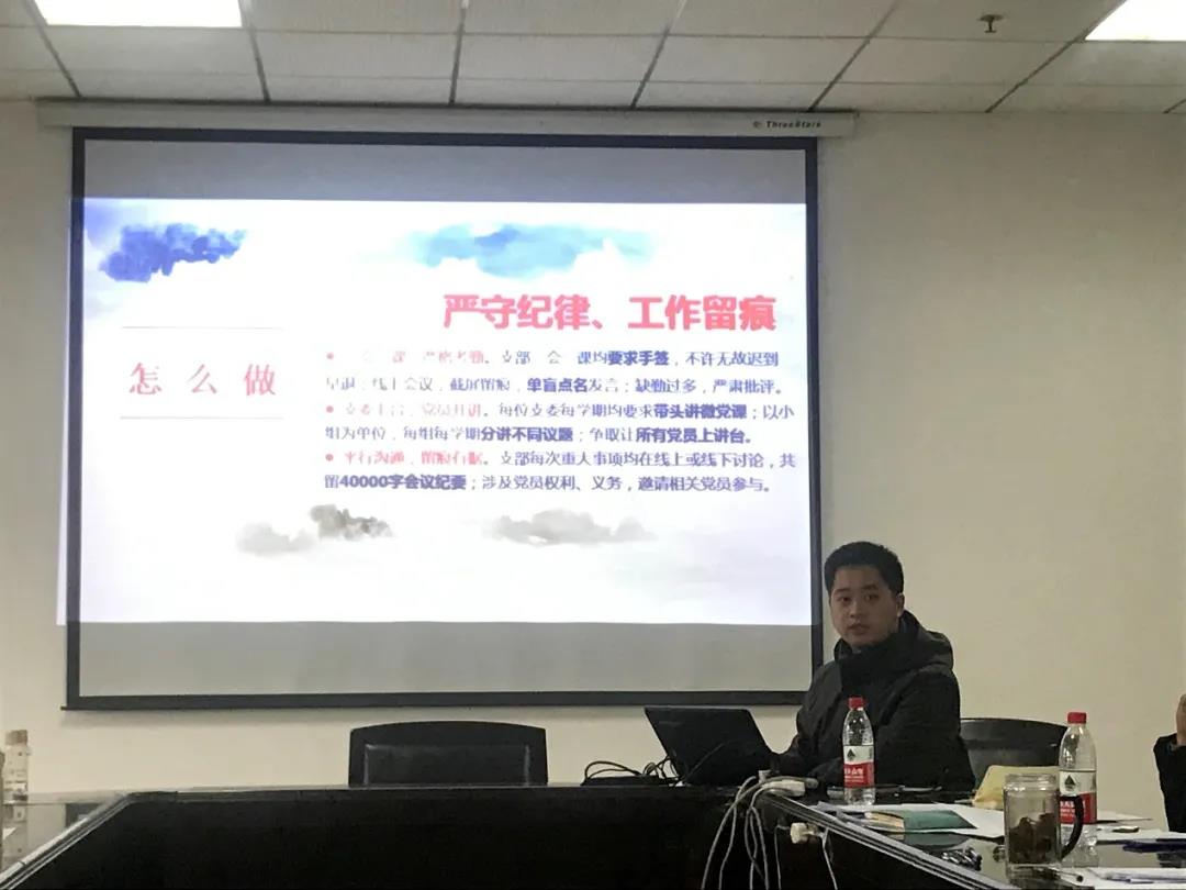 博士19级党支部书记周家尧从共产党员思想引领、关键导向的组织生活等多个角度阐述了党支部工作,展现了博士生党支部的风采。