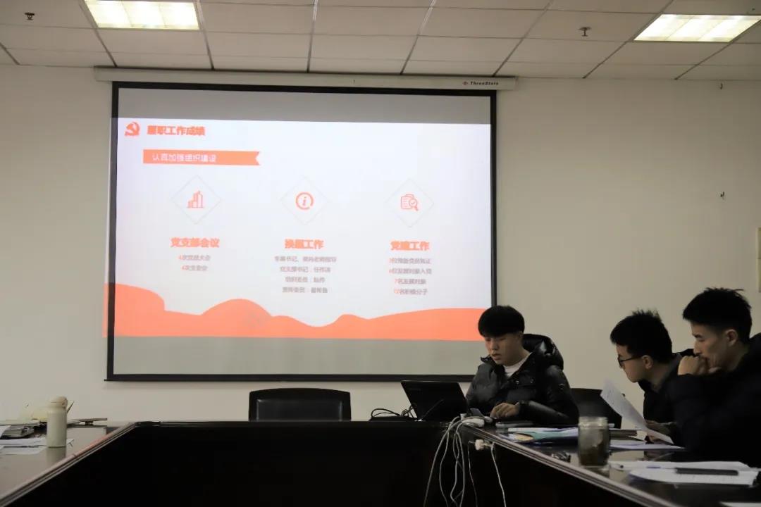 本科第一、第二、第四、第五党支部书记和博士党支部书记分别对过去一年的工作进行述职汇报。