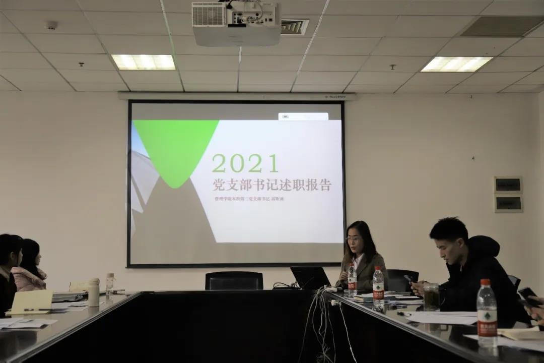 本科第二党支部书记高昕迪在述职汇报中介绍了本科第二党支部基本情况、党员队伍建设情况、思想政治建设情况、存在问题及未来工作计划。