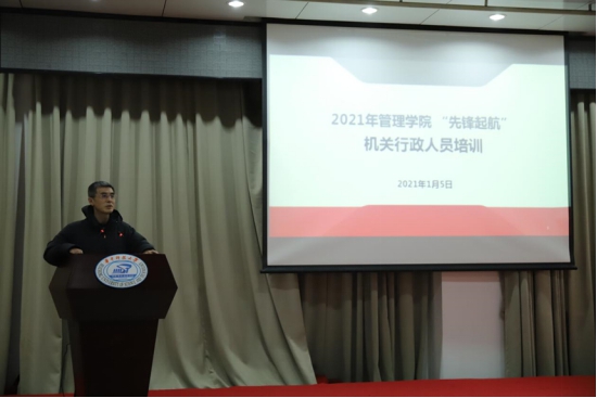 首先,金凌志为2021年度的“先锋起航”培训活动提学习要求。他结合学校巡察和调研中师生反映的机关行政服务问题,要求全体行政人员要以学生、教师为中心,切实履行工作职责、提高服务水平。他对全体行政人员提出了三点要求,一是学会微笑服务,二要对工作、对服务对象负责,三是学会换位思考、将心比心。