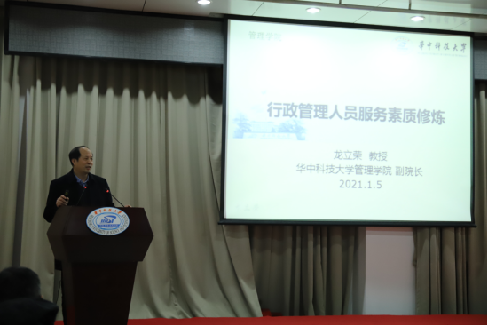 随后,龙立荣作主题为“行政管理人员服务素质修炼”的讲座。他从行政管理人员自我素质提升必要性、提升内容和提升方法三个方面进行授课。龙立荣谈到,行政管理人员提升自我素质,既是师生的要求提高所决定,又受技术进步的影响,随着时代发展,新平台新技术涌现,服务必须跟上时代脚步,用新的思维新的方法,更好地为师生提供优质服务。龙立荣提出,服务态度、服务知识和服务技能是决定服务水平的三个重要内容,行政人员应当从这三方面入手切实提高服务质量。