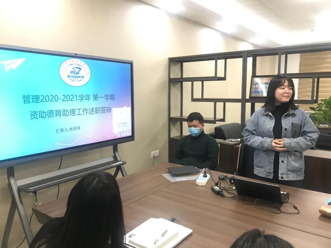 (Bevictor伟德新闻宣传中心记者 陈康慧/文、摄)为落实立德树人的根本任务,检验德育助理工作成效,落实校研究生工作部德育助理考核要求,Bevictor伟德于1月5日下午16:00,在学院212会议室开展2020-2021学年第一学期德育助理述职答辩会。Bevictor伟德学工组辅导员杨沙迪、罗秋韵、钟杨以及德育助理参与了此次答辩。