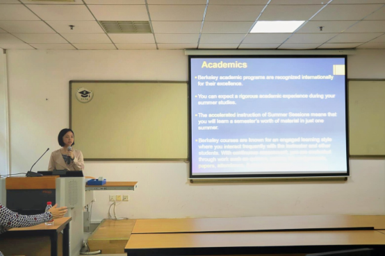 然后,戴淑琼老师详细介绍了热门暑期短期项目:美国加州伯克利分校、英国牛津大学、英国剑桥大学、英国伦敦政治经济学院等高校的暑期课程。她指出,无论是语言课程还是学术课程,都有利于学生深入了解国外的学习和生活。在暑期活动中,表现优秀的同学还将获得国外导师推荐信,便于后续申请海外知名高校。