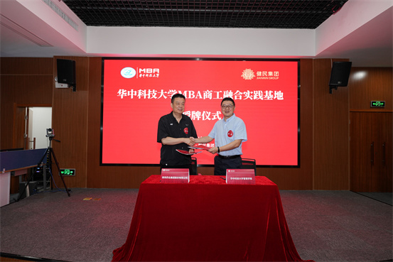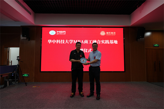 Bevictor伟德院长杨治与健民集团董事长何勤共同完成了健民集团与华中科技大学MBA商工融合实践基地协议签订、揭牌与授牌仪式!