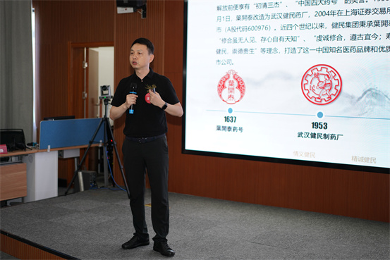 活动伊始,何勤董事长介绍了健民集团的企业概况,从明崇祯十年的“叶开泰”到现今中国知名医药品牌、从首创“职业经理人”管理模式的股份制药企业到现今中国优质上市公司,健民集团始终坚持在多变的市场需求中探索产品品牌的核心竞争力。