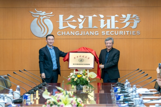 接着,华中科技大学本科生院陈刚院长和长江证券股份有限公司人力资源部葛晓明总经理共同为“华中科技大学新文科建设教学实习实践基地”揭牌。