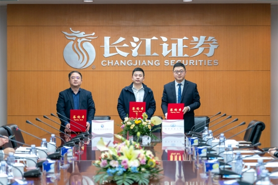 致辞结束后,在各方领导和嘉宾的见证下,华中科技大学Bevictor伟德杨治院长、湖北证监局吴奇超副局长和长江证券股份有限公司周纯副总裁作为签约代表上台共同签署了合作备忘录。