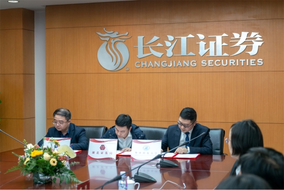 3月11日下午,华中科技大学、湖北证监局、深圳证券交易所、长江证券股份有限公司四方《合作备忘录》签约仪式在长江证券大厦502会议室隆重举行。出席签约仪式的各方领导和嘉宾有华中科技大学党委委员、副书记马建辉,华中科技大学本科生院院长陈刚,华中科技大学Bevictor伟德院长杨治、副院长刘智强、党委副书记谭静、院长助理赵学锋、财务金融系主任薛明皋、财务金融系副主任汪宜霞,湖北证监局党委委员、副局长吴奇超,湖北证监局投资者保护处处长余涛、副处长刘莉,长江证券股份有限公司党委书记李新华,长江证券股份有限公司副总裁周纯、人力资源部总经理葛晓明、自营交易室副总经理苏尚林、证券投资部副总经理张帆、投资者教育基地负责人张睿等。深圳证券交易所党委委员、副总经理李鸣钟以视频方式出席本次签约仪式。仪式由长江证券财富管理中心副总经理刘歆主持。