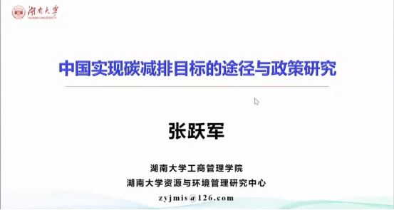 接着,张跃军分享了题为“中国实现碳减排目标的途径与政策研究”的报告,报告由胡鹏主持。张跃军从中国碳减排的政策背景、规划与目标出发,系统梳理了全球和世界主要国家在碳减排方面的努力,然后聚焦中国问题,从国家、省际、行业等多个层面,围绕碳减排效应分解、碳减排潜力评估、碳拥挤效应评估、直接和间接碳排放量测算、碳排放回弹效应研究等关键科学问题开展系统深入的理论分析和扎实规范的实证研究,最后总结国际碳减排政策经验,并为中国碳减排政策优化设计提供了实施路径和政策建议。