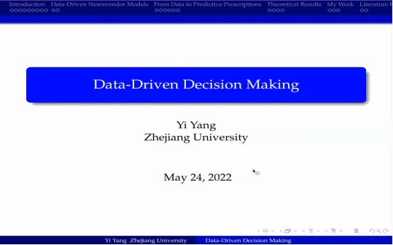 随后,杨翼带来了“Data-Driven Decision Making”的主题分享。他首先提到了不确定性给管理带来的困难,并从报童模型出发,详细介绍了复杂条件下的决策模型与数据驱动算法。然后,杨翼通过数据驱动策略的构建,利用盒马生鲜真实数据进行验证,结果表明,使用数据驱动的泰勒近似法(Data-Driven Taylor Approximation)将降低盒马生鲜11%的平均库存成本,从而指出大数据背景下数据驱动思维方法的必要性与优越性。