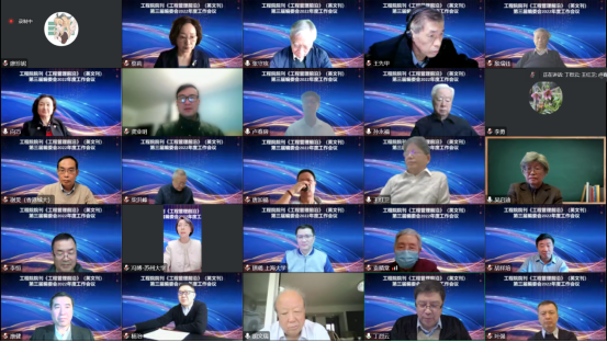 2023年2月6日下午,工程院院刊《工程管理前沿》(英文刊)(Frontiers of Engineering Management)第三届编委会2022年度工作会议通过线上形式在腾讯会议召开。中国工程院工程管理学部何继善、卢春房、丁烈云、向巧、陈晓红等二十三位院士和国内外三十一所高校共三十七位编委参加了本次会议,工程院三局高战军局长、工程院学术与出版办公室主任陈姝婷和工程院工程管理学部办公室主任聂淑琴出席了本次会议,工程院相关工作人员、高等教育出版社和华中科技大学期刊编辑部相关人员列席了会议。本次会议由执行主编丁烈云院士主持。