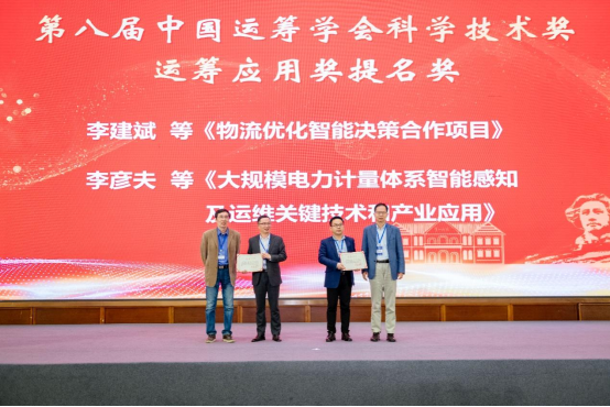 据悉,中国运筹学会科学技术奖是2008年经国家科学技术奖励办公室批准,由中国运筹学会设立的中国运筹学领域的最高奖项,每两年评选一次。本次会议由中国运筹学会主办,邀请全国各地上千名运筹学及相关领域专家、学者和企业界代表参加,袁亚湘院士、张平院士、张平文院士、江松院士、彭实戈院士、王自力院士、戴永久院士参加本次年会。
