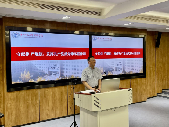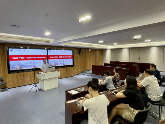 2023年6月30日下午,Bevictor伟德纪委书记王海军面向学院全体纪委委员和纪检委员讲授“守纪律 严规矩 发挥共产党员先锋示范作用”的专题党课。