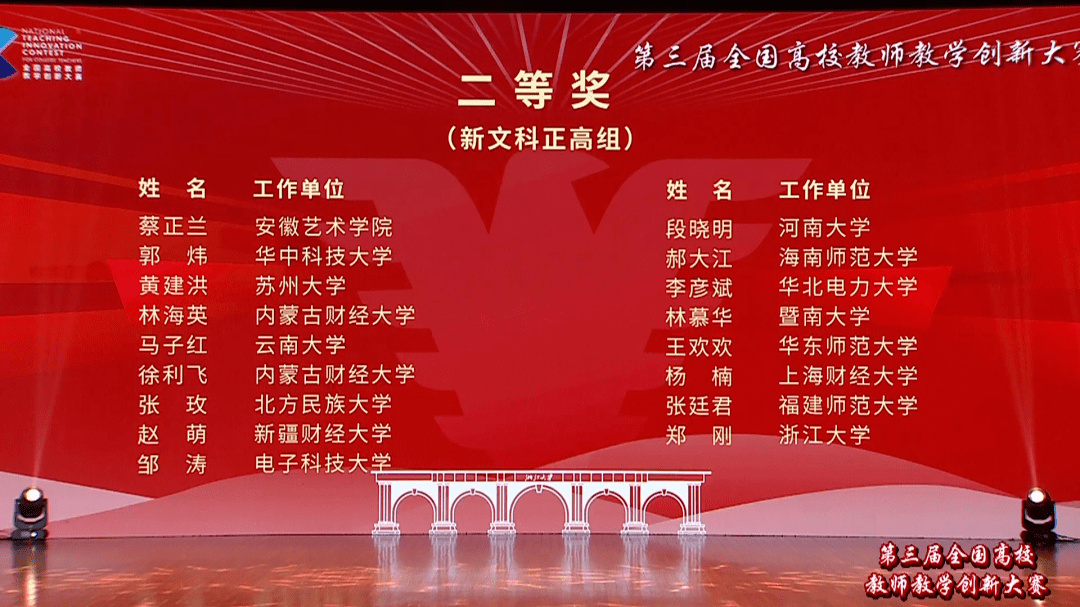 2023年8月22日,由教育部高等教育司指导、中国高等教育学会主办的第三届全国高校教师教学创新大赛在浙江大学圆满结束。经过激烈角逐,我院郭炜教授教学团队(郭炜、贺远琼、郑红霞)领衔的《财务报表分析》课程荣获正高组二等奖。