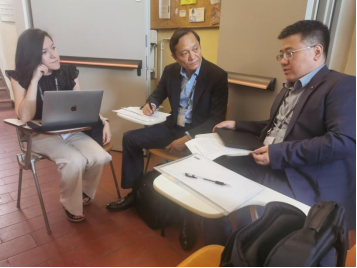 胡鹏一行会见了本次会议的举办方意大利博洛尼亚大学商学院院长Massimo Bergami教授和亚太事务主管Giorgio Prodi。双方就短期项目、科研合作等方面进行了深入探讨,开辟了我院在意大利高校的合作网络。Massimo Bergami赞赏我院的国际化战略,并愿在学生交换、联合研究和教师交流等方面加强合作。