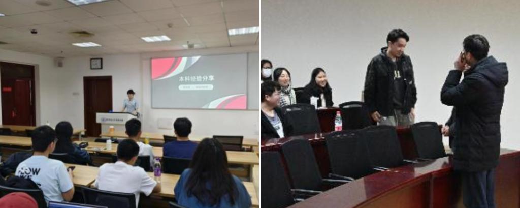 做好生涯规划,明确学生今后发展方向。在未来发展上,王林老师不仅会结合自己的研究方向为班级同学讲解专业知识以及未来的发展方向,也十分注重朋辈辅导活动,多次邀请学长学姐为班级同学分享了有关保研以及课内学习经验。