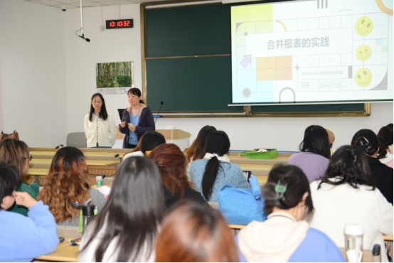 课堂伊始,高茹教授首先向同学们介绍了今天的特邀主讲嘉宾张顺女士,表示她将结合自己丰富的财务从业经验和职业成长历程,与大家分享她在企业合并报表实践上的见解和心得。这一开场白立即激起了同学们浓厚的兴趣。