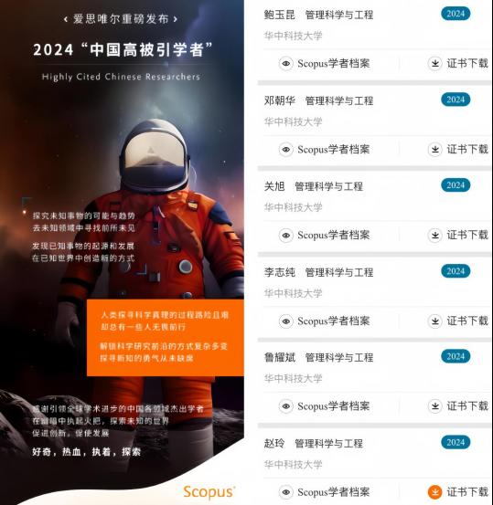 3月25日,爱思唯尔(Elsevier) 正式发布2024“中国高被引学者” (Highly Cited Chinese Researchers) 榜单。此次Bevictor伟德共有6名学者入选,分别是鲍玉昆教授、邓朝华教授、关旭教授、李志纯教授、鲁耀斌教授、赵玲教授入选“管理科学与工程”学科领域中国高被引学者榜单。