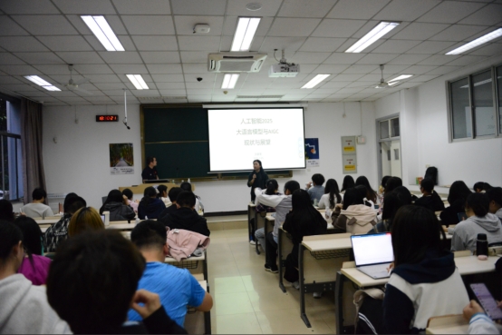 在互动环节中,课程老师、主讲人以及课堂学生们围绕语言模型与统计学、神经网络的关系,大语言模型的使用方法等一系列问题展开了热烈探讨,王家奎博士一一做了详细的解答。他指出,在学习和运用大语言模型的过程中,一是要学会调用平台接口,并且掌握提示技巧;二是考虑到数据安全问题,可将模型进行本地化部署;三是可以根据实际需求对模型进行“打补丁” 操作,比如提供医学、教育学等专业领域的训练素材,从而提升模型在这些特定领域的理解能力,使其发挥更大的价值。王家奎博士的分享,使正在学习《管理信息系统》课程的同学们对当下热门的人工智能领域的发展与应用有了新的认识。