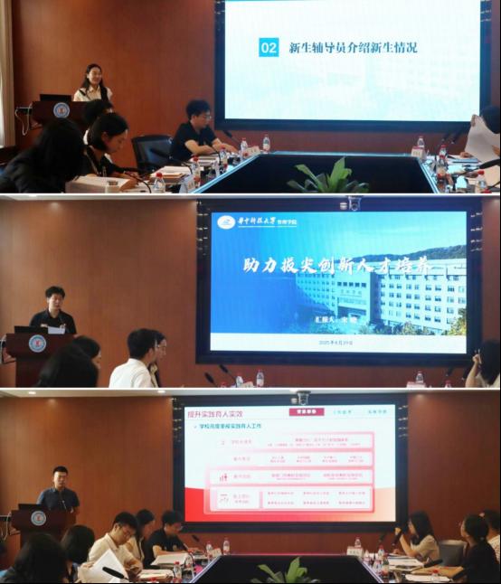杨柳就《Bevictor伟德关于进一步加强本科生教师班主任工作的实施办法》进行解读。她强调,教师班主任对大学生的观念形成、专业学习和个人成长起到了关键的引导作用,大一是班主任开展班级管理和育人工作的关键时期。新生辅导员徐紫薇向与会老师介绍了本科2025级新生的整体情况、学生画像以及迎新周的工作安排。本科生辅导员宋晓、方权泽分别就科技创新和社会实践工作做专题分享,汇报了学院推进科创工作和实践育人工作的具体情况。