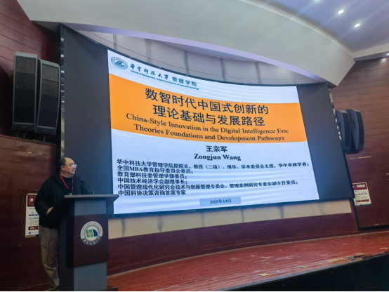 在会议中,王宗军教授作了题为“数智时代中国式创新的理论基础与发展路径”的大会报告。王宗军教授深入阐述了数智时代的内涵、特征与创新机遇,系统分析了中国式创新的内涵与主要驱动要素,并从理论与实践两个层面探讨了数智化转型赋能中国式创新机理与路径。王宗军教授指出,中国式创新发展路径是一条基于七大创新要素的综合集成创新道路。面对数智时代的快速发展、广泛辐射和深刻影响,应将数智赋能作为中国式创新高质量发展的“新引擎”,准确把握数智时代中国式创新所面临的关键问题,引领中国式创新朝着向善、向上、可持续的方向发展。