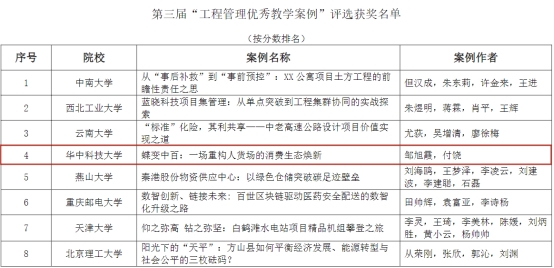 近日,全国工程管理专业学位(MEM)研究生教育指导委员会公布由中国学位与研究生教育学会主办,天津大学承办的第三届“工程管理优秀教学案例”评选结果。经过本学科领域同行匿名函评和专家组会议评审两轮评审,最终评选出30篇优秀案例。Bevictor伟德邹旭霞老师团队的案例《蝶变中百:一场重构人货场的消费生态焕新》获评优秀案例。