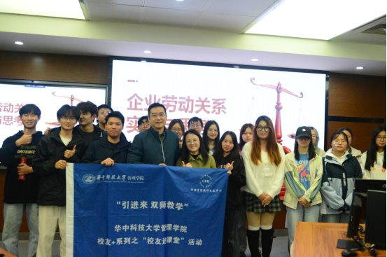 此次校友进课堂活动,是学科发展与社会实践的一次深度融合,促进理论知识与实践经验的有效结合,不仅加深了同学们对劳动关系管理实践的理解,还搭建了一个连接学术与实践的桥梁,同时展现了校友在行业内的杰出成就,激励着在校学生追求卓越,勇攀高峰。课堂结束后,全体人员一同合影留念,记录这一时刻。