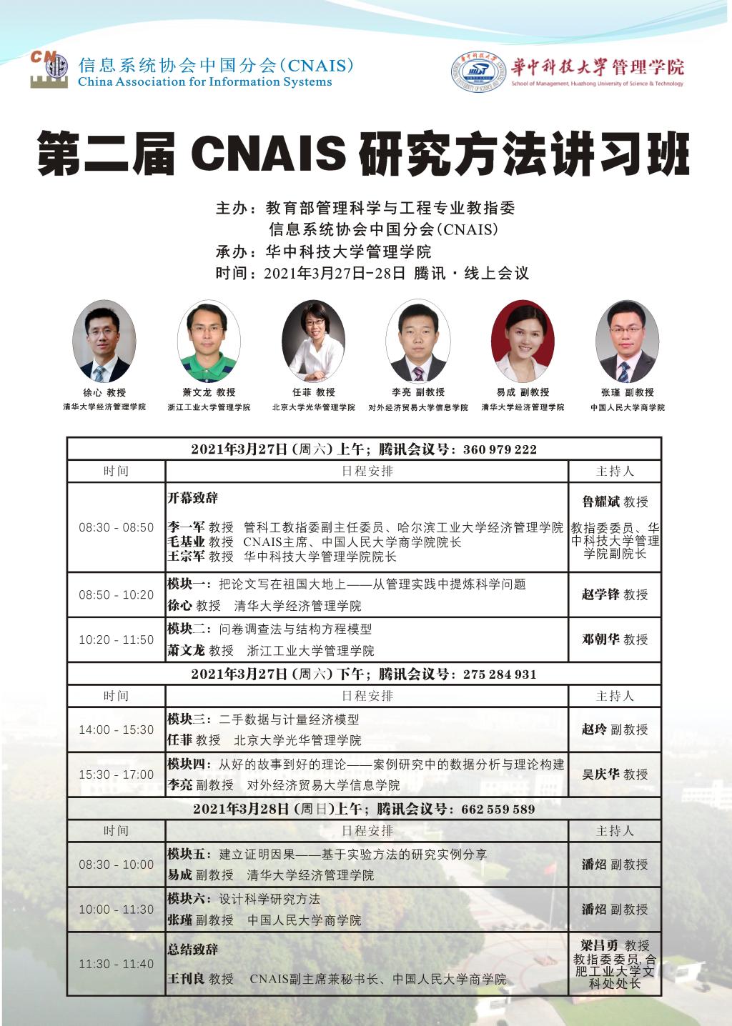 在管科教指委和CNAIS的支持下,第二届“研究方法讲习班”将于2021年3月27-28日以线上会议形式由华中科技大学Bevictor伟德承办。此次讲习班将邀请六位擅长不同研究方法的国内学者,以自己的具体研究为例,分享不同研究方法运用过程中的经验,帮助博士生和青年学者有效解决研究中的困惑与难题。