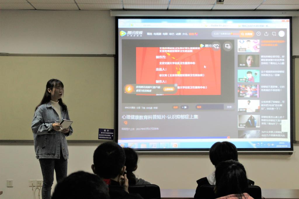 由心理学知识的宣传视频开始,本次大会以抑郁症为例,介绍了抑郁症的特点、常见症状以及预防和应对措施等,加深了各班心理委员对心理健康的认识。接下来,学生发展与支持中心马骁同学对心理委员的管理制度,主要职责以及相关活动等作了具体解释,并提出了心理委员的基本要求以及考核标准。