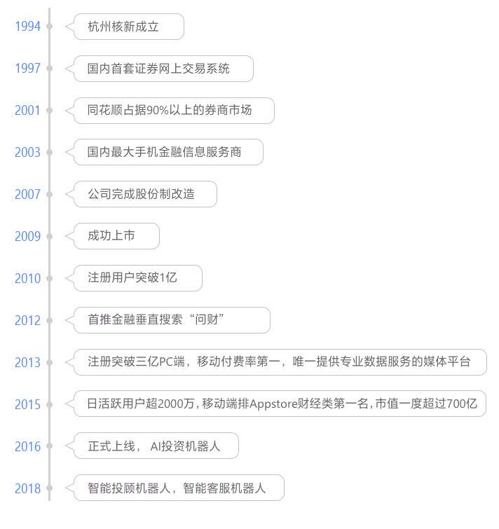 浙江核新同花顺网络信息股份有限公司是国内产品类别最为全面的互联网金融信息服务商,同时也是国家规划布局内重点软件企业、国家信息化试点工程单位。公司成立于1995年,并于2009年在深交所上市(股票代码:300033)是国内第一家互联网金融信息服务行业上市公司。