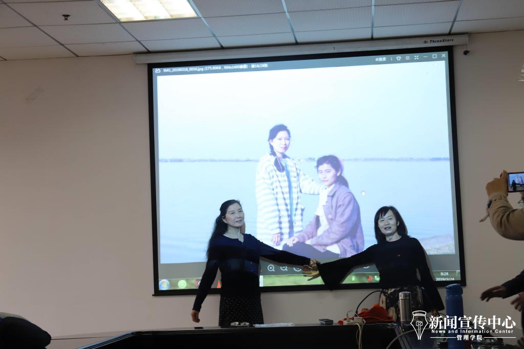 在返校聚会活动上,王陆萱校友放映了89级的毕业照片,引得在场的校友们都一同兴奋地讨论着、回忆着照片背后的故事,还以同样的姿势与照片合影。
