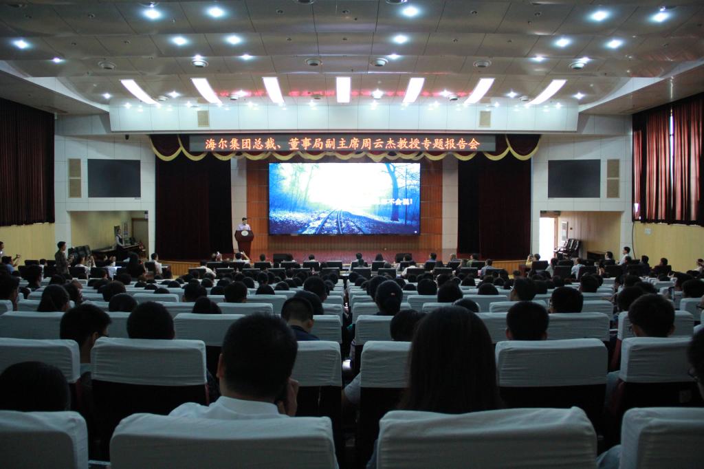 在互动环节,周云杰就“新兴市场的开拓”,“中美贸易战”,“海尔是海的概念如何面对时代的冲击”等问题与在场师生进行了深入交流。比如他认为面对颠覆,海尔已做好了准备,而张瑞敏先生也在致创客的一封信里提到海尔是云,海再大,仍有边际。云再小,可接万端。