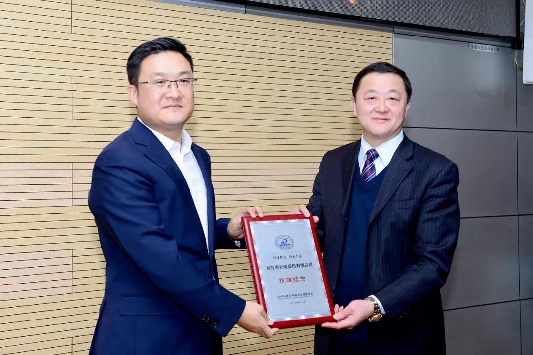 最后,许晓东代表学校向柴再希、董国光颁发了捐赠奖牌。