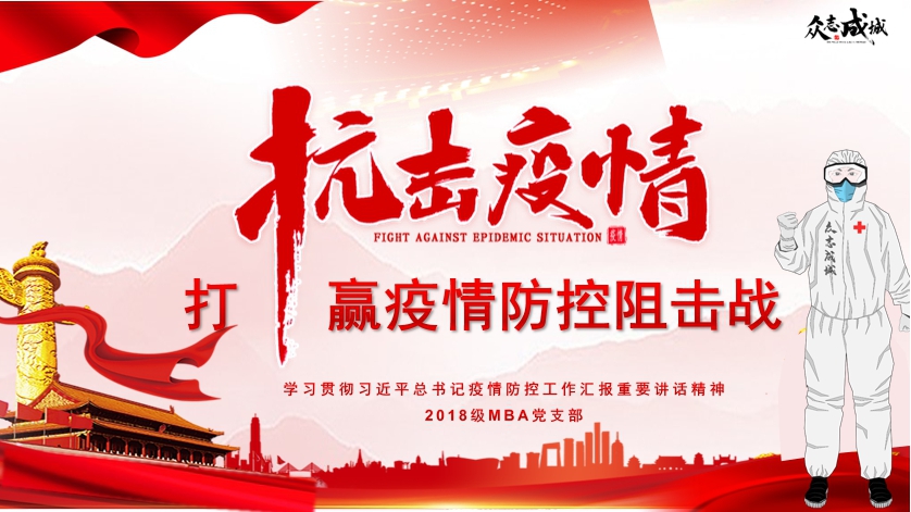 随后,MBA2018级党支部书记程馨慧以“学习贯彻习近平总书记疫情防控工作汇报重要讲话精神”为主题讲授了微党课,向大家解读了疫情防控指导思想、总体要求和工作部署。微党课上,程馨慧还同大家分享了抗疫期间身边的感人事例,并呼吁大家作为华中大的一员,要努力在家做好科研学习,不出门不为社会添乱,为抗疫贡献绵薄之力,与祖国上下同心,众志成城,抗击疫情!