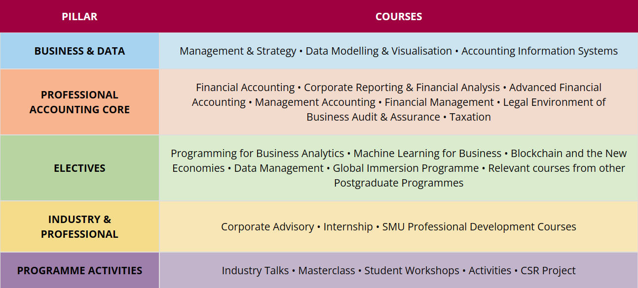 新加坡管理大学财务大数据分析硕士课程(Master of Science in Accounting (Data & Analytics), MSA)是亚洲第一个会计数据和分析硕士学位课程,专门为致力于将数据科技应用到财务和金融领域的专业人士而设定,旨在帮助他们解决相关商业难题。
