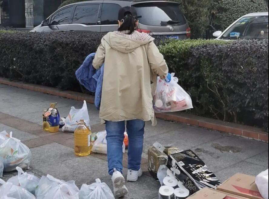3月2日上午9时30分,当天的蔬菜米面、粮油、日用品等物资送到值班点,胡鹏、詹文杰迅速开始分拣、归类,并和保卫处协助人员一起骑电动车、用手推车一趟趟将物资送到居民楼栋下。经过3个多小时的奋战,共为55户发放了91个套餐,并一一与住户联系下楼取用。