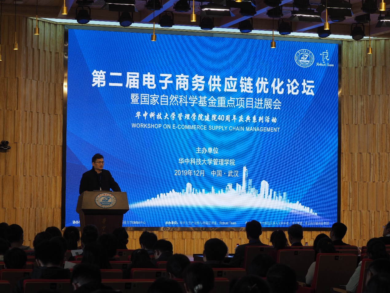 下午,“拥抱数字化时代,构建智慧供应链”第二届电子商务供应链优化论坛在华中科技大学梧桐语问学中心明德报告厅召开。