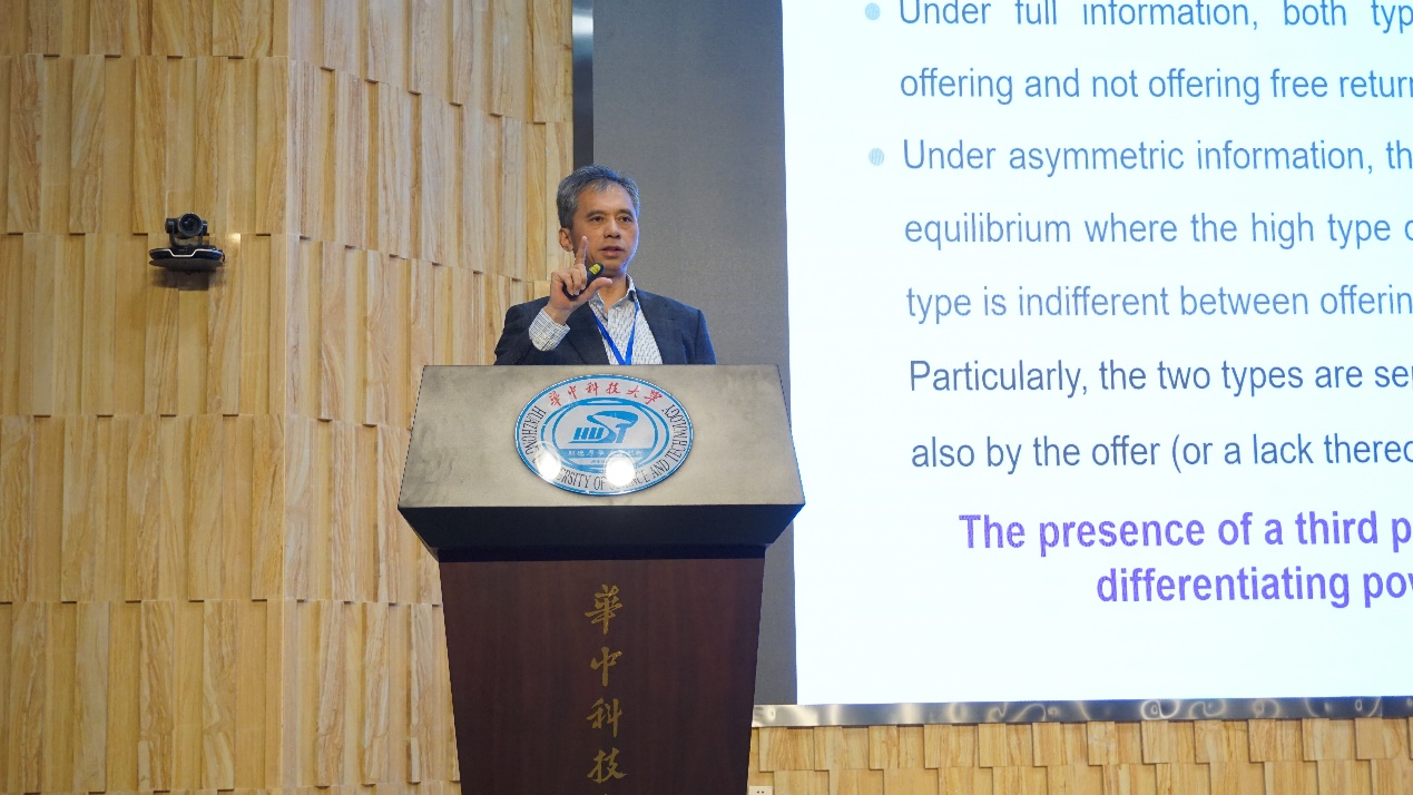 随后,进入主题论坛阶段,共分为五个部分,陈剑教授介绍其在“Signaling Quality with Return Insurance: Theory and Empirical Evidence”中的研究结论,李金玲就“数字社交技术与跨境电商”展开汇报,李勇建教授以“Product Quality and Pricing Strategies with Trade-In Programs”为题与参会人员进行了交流,此外,吴昊、王嘉豪分别以“(宝洁)智能供应链如何玩转新零售”“构建城市末端的基础设施”为题分享了他们的观点看法。