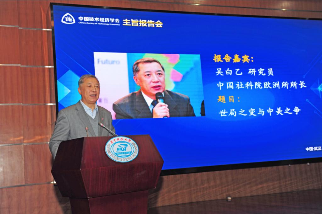 中国社科院欧洲所所长吴白乙研究员发表了以“世局之变与中美之争”为主题的演讲。吴白乙研究员首先从历史和政治角度探讨了中美关系的演变,并重点指出中美之争的焦点在于技术之争。接着,他强调了忧患意识、战略焦虑在世界格局之变和中美之争中的必要性。吴白乙研究员认为,21世纪的关键是体制和制度,中美之争是长期且复杂的。最后,吴白乙研究员对中国和世界应如何应对变局提出了自己的看法。