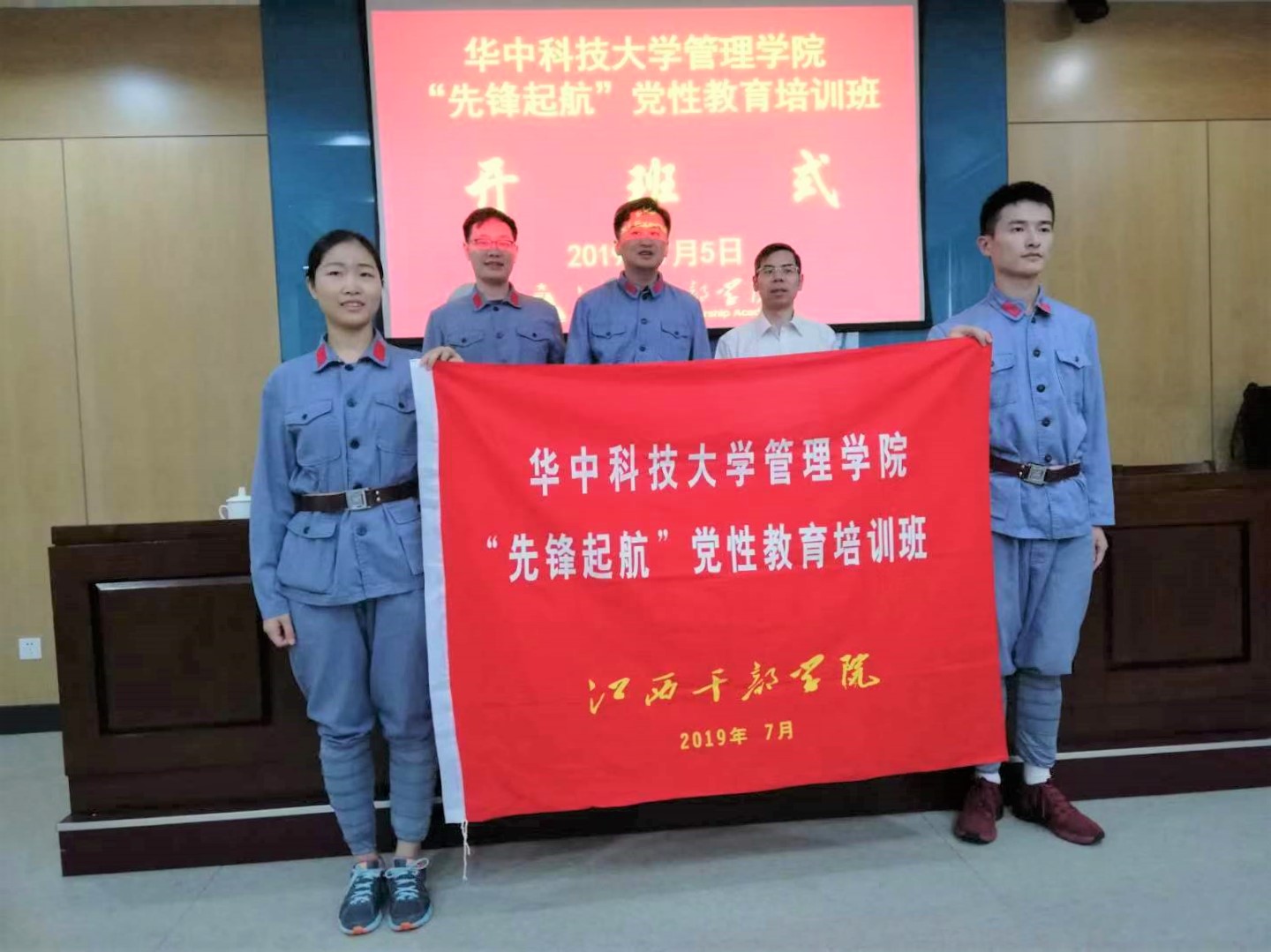 随后江西干部学院院长郭评生为本次培训班做了总结,并为全体学员颁发了结业证书。最后,伴随着庄严肃穆的国际歌,本次“先锋起航”党性教育培训班圆满结束,全体师生们在班旗上签字留念。